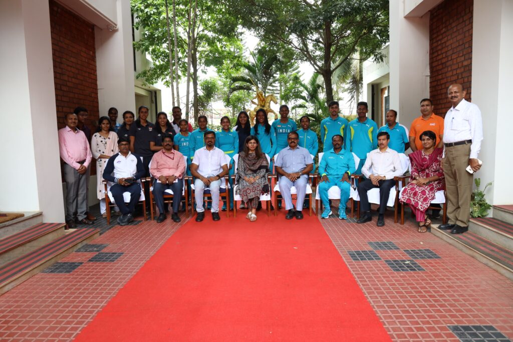 The Sports Authority of India, Regional Centre at LNCPE, Kariavattom, Thiruvananthapuram, hosted Smt. Raksha Nikhil Khadse, Minister of State for Youth Affairs & Sports, Government of India. She was welcomed by Dr. G. Kishore, Principal, LNCPE & Regional Head, SAI RC.
