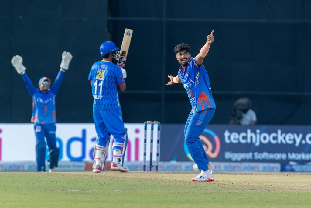 The partnership continued to dominate until the breakthrough came in the 10th over as Lalit Yadav dismissed Ranjan (51). In the next over, Arnav Bugga, who had built momentum with a fluent 39 from 26 deliveries, was dismissed by Udhav Mohan. Soon after, Lalit Yadav added to the pressure by claiming another important scalp of Yajas Sharma. The Strikers lost couple of more wickets in quick succession in middle overs courtesy of disciplined bowling from Udhav Mohan, Lalit Yadav, and Rajneesh Dadar, who all ensured the innings didn’t completely run away from the fielding side as they restricted the Strikers to 179/8.