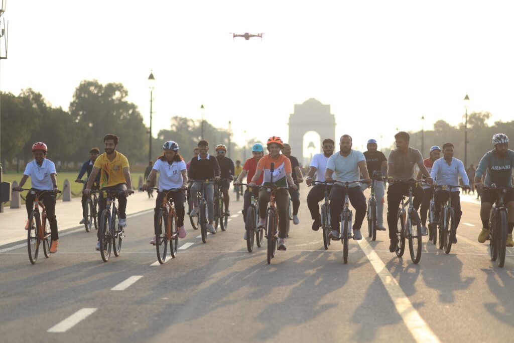 Mountaineer Nisha Kumari, who climbed Mount Everest on May 17, 2023 and cycled from India to London to spread the message of ‘Change before climate change,’ said: “I have been fortunate to be part of the Fit India Sundays on Cycle initiative started by our honourable Sports Minister Dr Mansukh Mandaviya. I cycled in Gujarat twice as part of this event. Today I cycled in New Delhi and it gave me immense pleasure to see how enthusiastically youngsters participated in the cycling drive. People must take out minimum 30 minutes for their personal fitness. If we focus on our fitness, we can save ourselves from any kind of illness caused due to pollution and adulterated food we intake.”