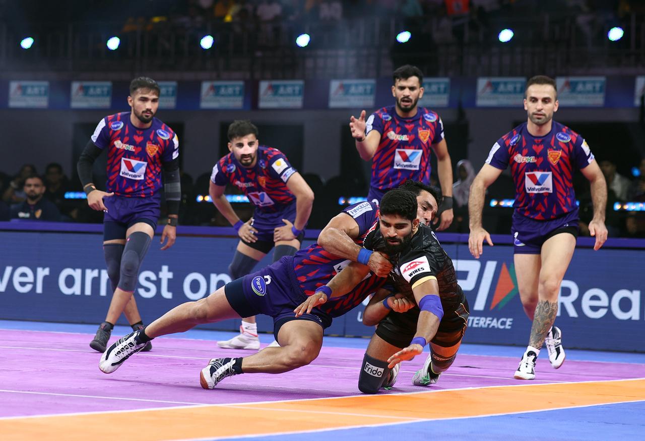 The second half began with an all-round effort from the UP Yoddhas, who managed to score a couple of early points. However, Ankit Dahiya’s brilliant tackle handed the Gujarat Giants an immediate point, keeping the momentum with his team.