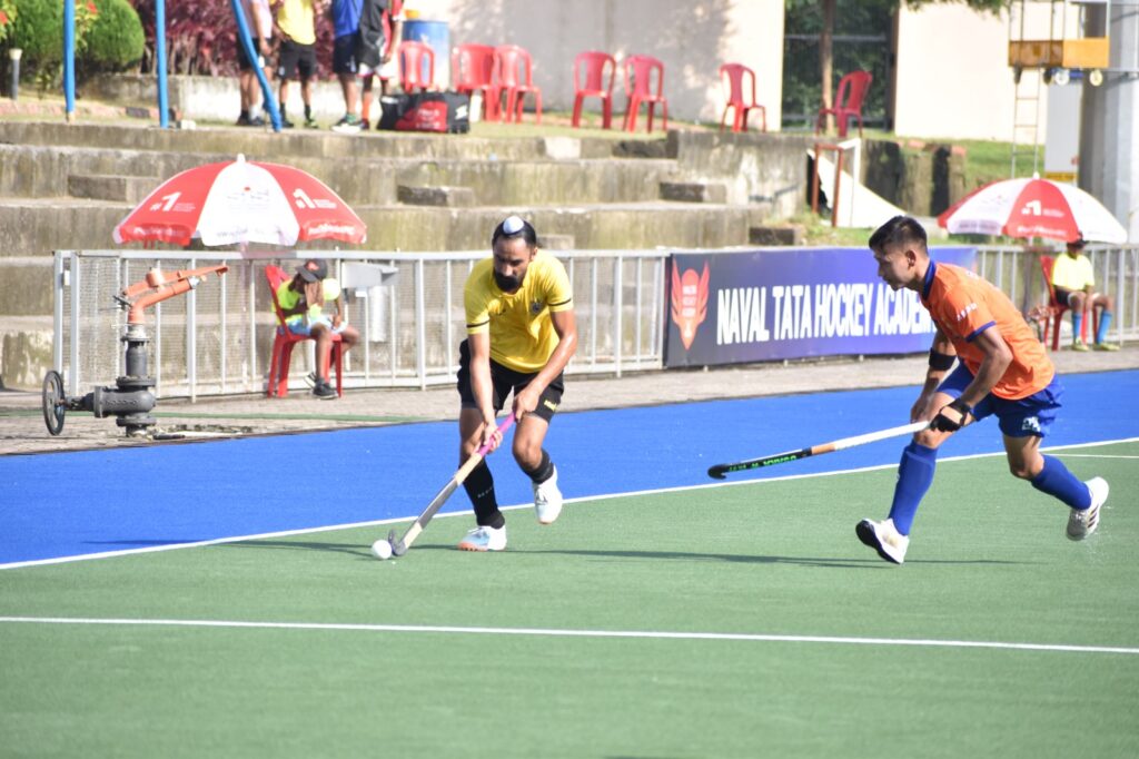 In the opening clash, Railway Sports Promotion Board defeated Central Reserve Police Force 5-1 in Pool B. Captain Sayyad Niyaz Rahim (6’) set the tone early before Pankaj (12’, 15’) netted twice. Simranjot Singh (43’) and Gursahibjit Singh (56’) added one apiece to complete the tally. For CRPF, Samsher (49’) struck a consolation goal.