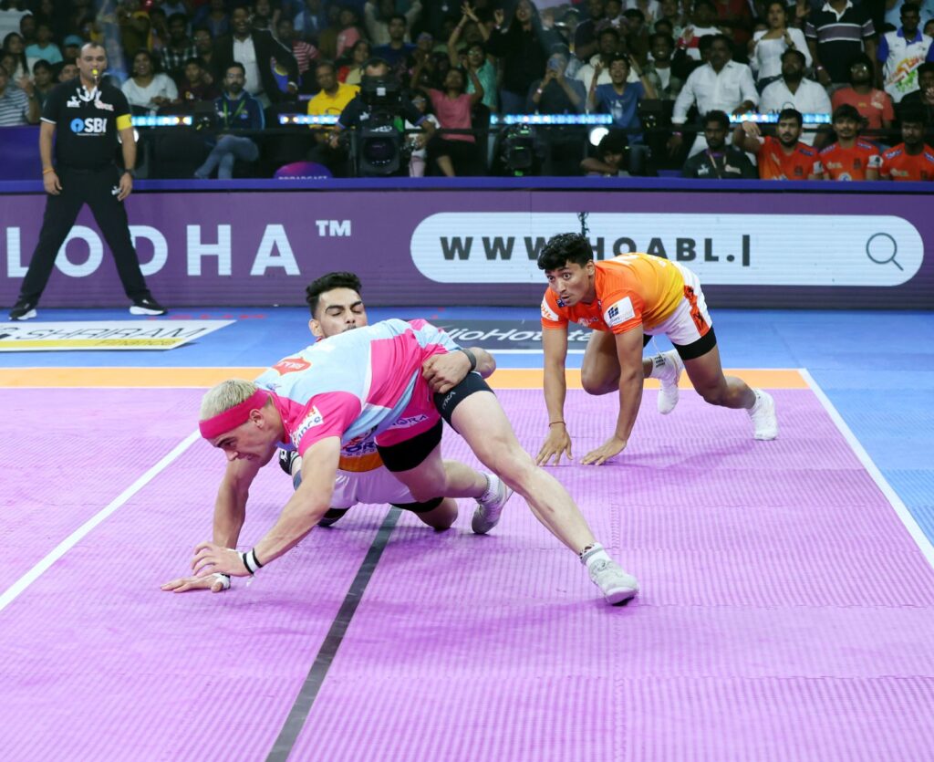 With Jaipur Pink Panthers on the verge of completing a memorable comeback, Mohit Goyat shut the door with a crucial Super Tackle. His head coach mentioned, “We have to credit Mohit for his performance today. He’s a raider but he recorded two crucial catches for us today, in a situation where there was a lot of pressure on the team. So, Mohit’s Super Tackle won us the match today.”