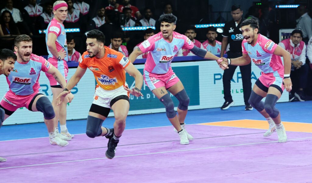 Chennai, October 5, 2025: Puneri Paltan clinched a thrilling contest against the Jaipur Pink Panthers, getting over the line with a 41-36 win at the SDAT Multi Purpose Indoor Stadium on Saturday. Ajay Thakur’s side managed to hold their opponents at bay, despite Ali Samadi’s 22-point masterclass, which was also the best performance by an international player in the league.