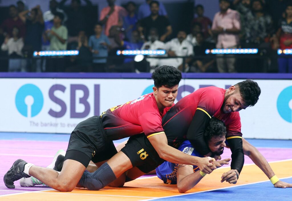 Chennai, October 5, 2025: The Bengaluru Bulls earned a hard-fought 33-29 victory over the Tamil Thalaivas at the SDAT Multi Purpose Indoor Stadium in Chennai on Sunday night. Led by another Super 10 for Alireza Mirzaian, and a High Five for Sanjay Dhull, it was a clash that could have gone either way before the season 6 winners secured the win. It was also a milestone moment for Arjun, who completed 1300 points in the PKL.