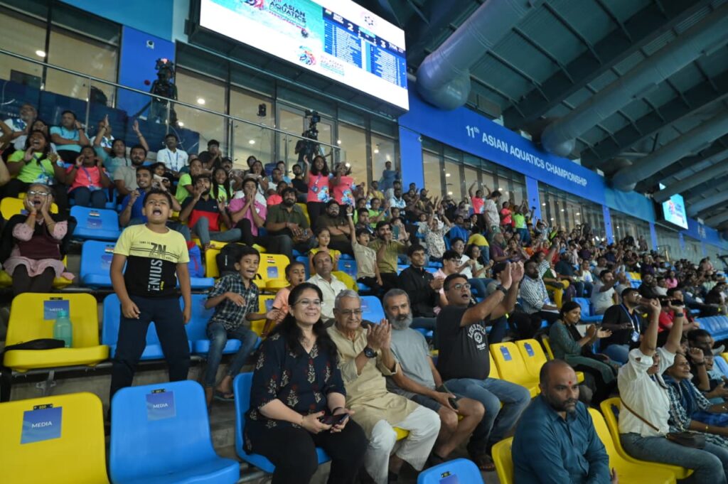 Interestingly, their enthusiasm has been matched by the Indian spectators, many of whom are witnessing artistic swimming live for the first time. Drawn in by the high-energy music, colourful routines, and athletic grace of the competitors, local audiences have added to the electric setting.