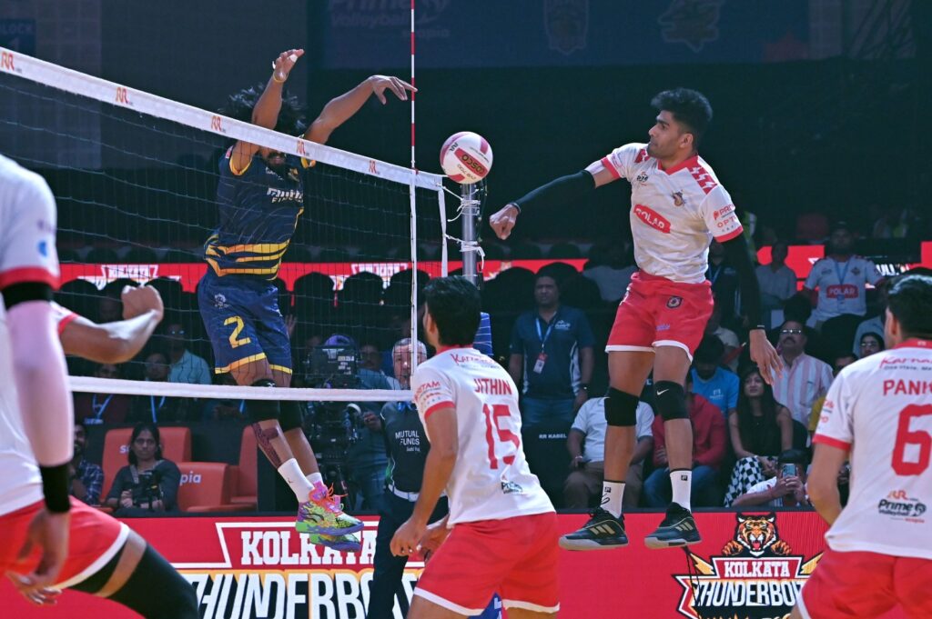 Coming on the back of a win over Goa Guardians, Kochi came off hard with Hemanth making powerful serves. Kolkata captain Ashwal Rai continued his role as the outside hitter and started making an impact again. Pankaj Sharma showcased early on why he remains Kolkata’s biggest threat on the court as he tested Kochi’s defence.