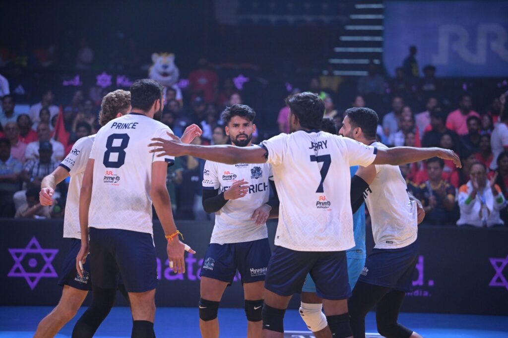 14th October, 2025: Goa Guardians returned to winning ways, defeating Kolkata Thunderbolts 15-11, 15-8, 15-6 in the RR Kabel Prime Volleyball League powered by Scapia at the Gachibowli Indoor Stadium, Hyderabad on Tuesday. Rohit Yadav was named the Player of the Match. With this victory, the Goa Guardians move up to fourth position on the points table with 11 points.