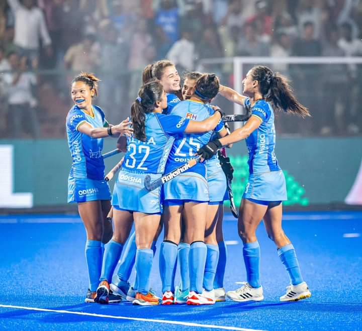 Rajgir, 12th November 2024: The Indian Women’s Hockey Team registered a 3-2 win against Korea in their second match of the Bihar Women’s Asian Champions Trophy Rajgir 2024 at the Rajgir Sports Complex Hockey Stadium today. Sangita Kumari (3’) continued her hot form in front of goal while Deepika (20’, 57’) scored a brace to confirm the victory for India. Lee Yuri (34’) and Captain Cheon Eunbi (38’) were the goalscorers for Korea in the closely-fought encounter.